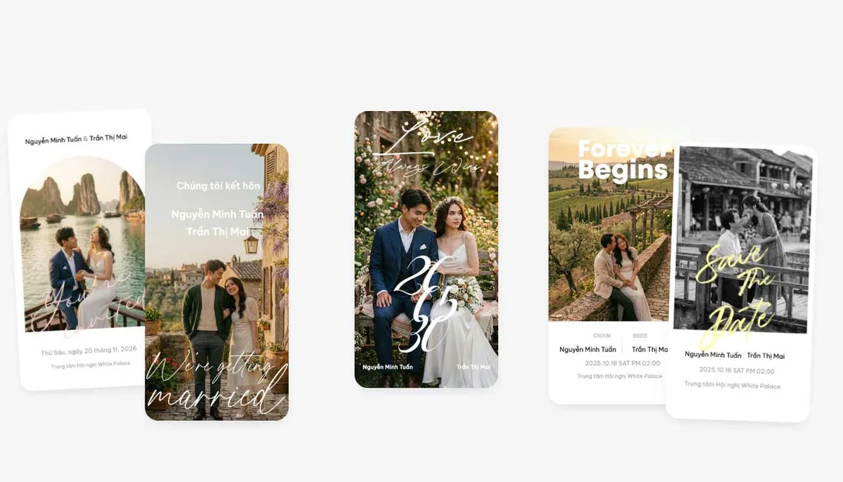 Hướng dẫn tạo thiệp cưới điện tử miễn phí từng bước. So sánh mẫu miễn phí và premium, chia sẻ qua Zalo chỉ trong 3 phút.
